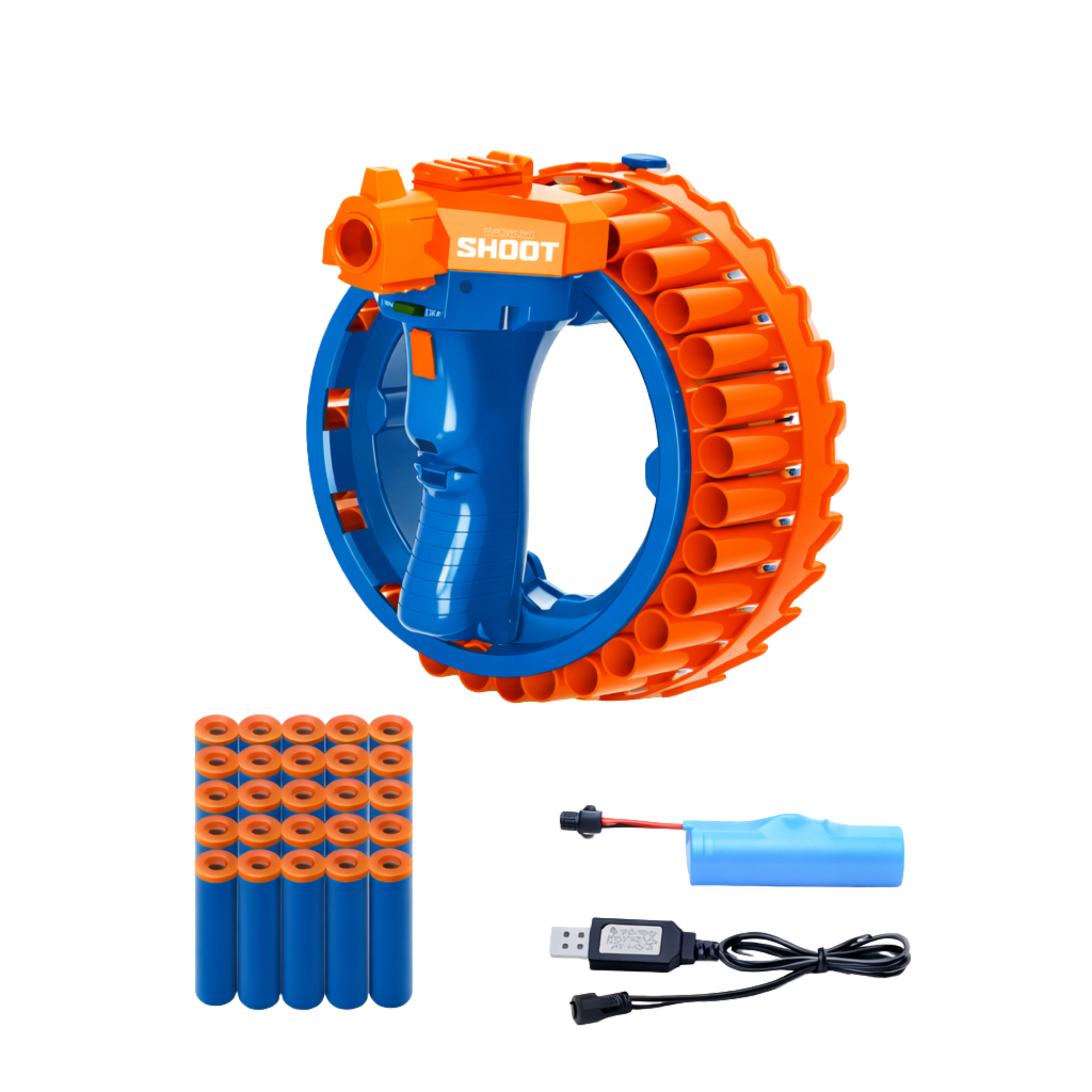 A rapid-fire foam dart gun designed for exciting indoor and outdoor play with safe soft bullets.